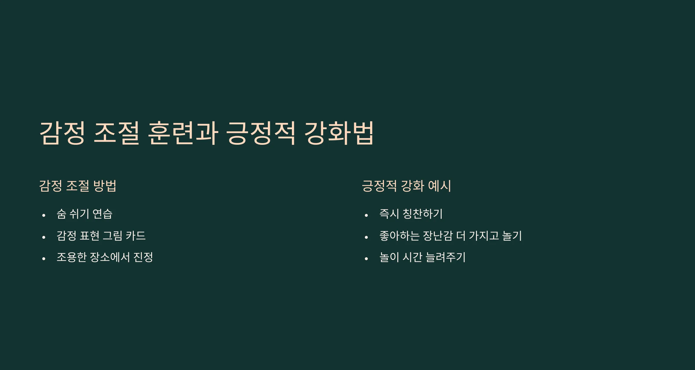 ✔ 긍정적인 행동을 칭찬하고, 부정적인 행동을 차분히 교정하는 것이 중요합니다.