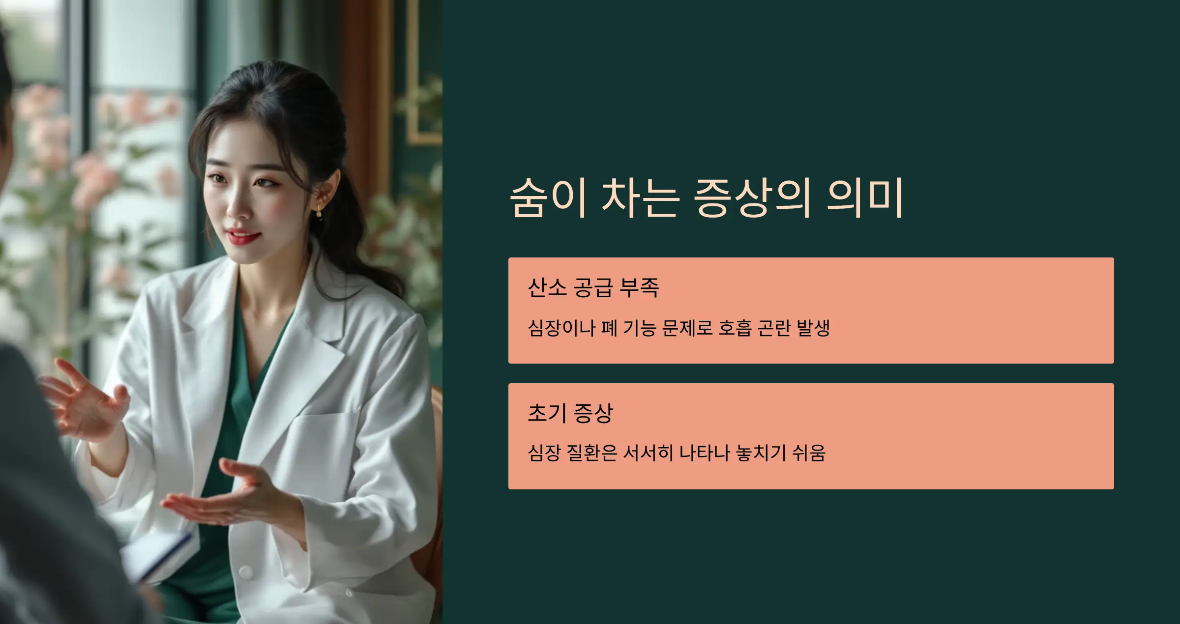 숨이 차는 증상은 가벼운 신호일 수도 있지만, 심부전이나 부정맥 같은 심각한 질환의 전조일 수 있습니다.