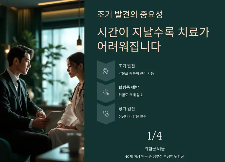 하지만 조기에 발견하면 약물로 충분히 관리할 수 있고, 합병증 위험도 크게 줄일 수 있습니다.