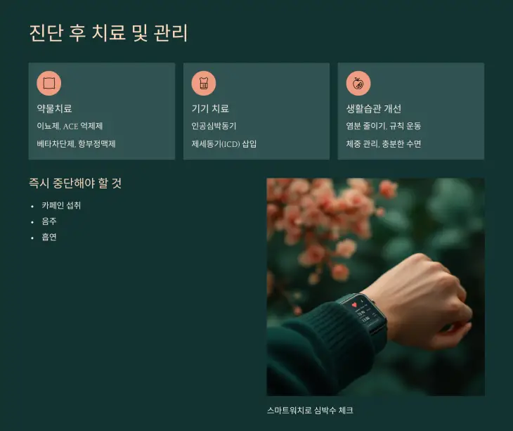 특히 부정맥 환자는 스마트워치 심박수 기능을 활용해 일상적으로 리듬 변화를 체크하는 것도 도움이 됩니다. ⌚