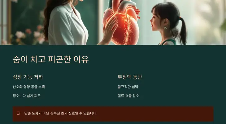 숨이 차고 피로한 증상이 지속된다면, 반드시 심장내과를 방문하세요. 🏥