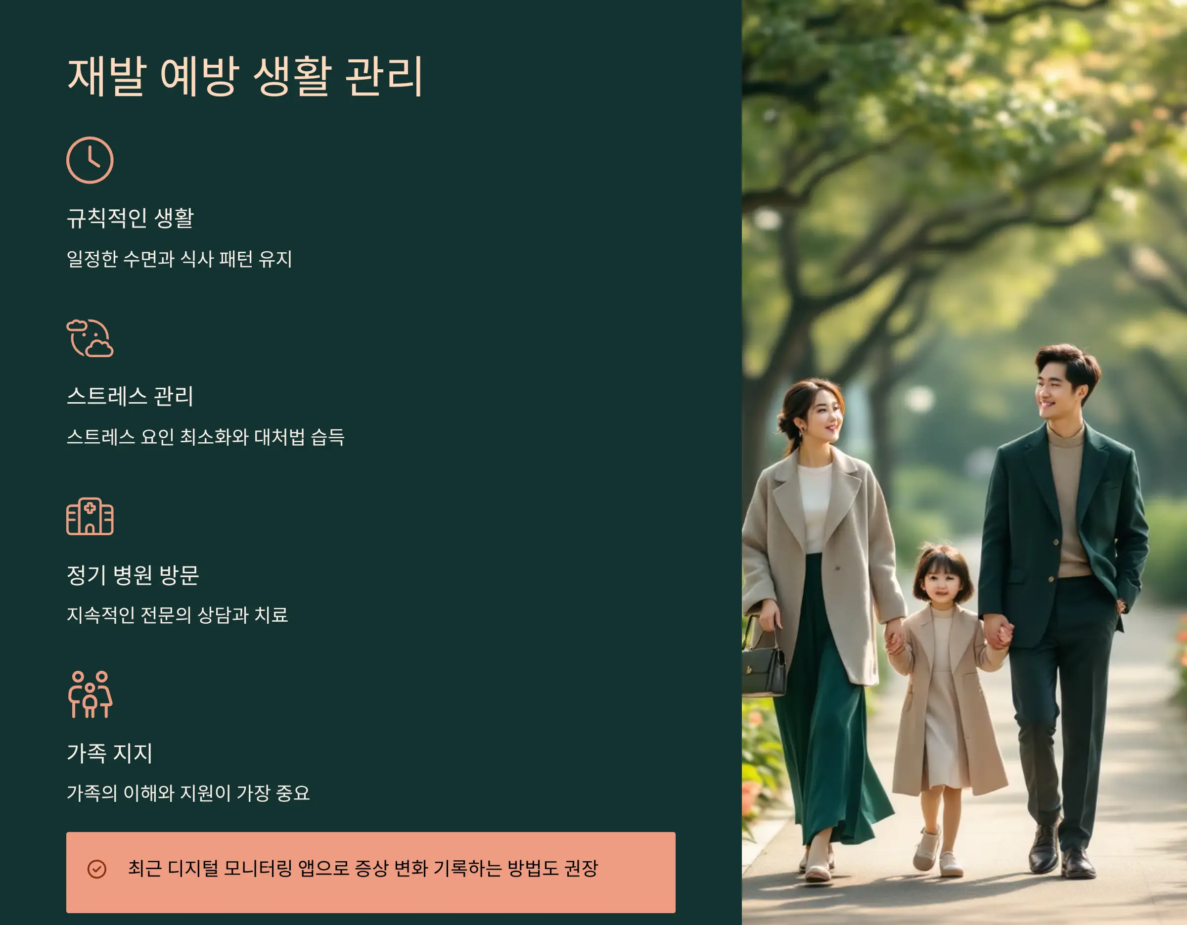 - 재발 예방을 위한 생활 관리