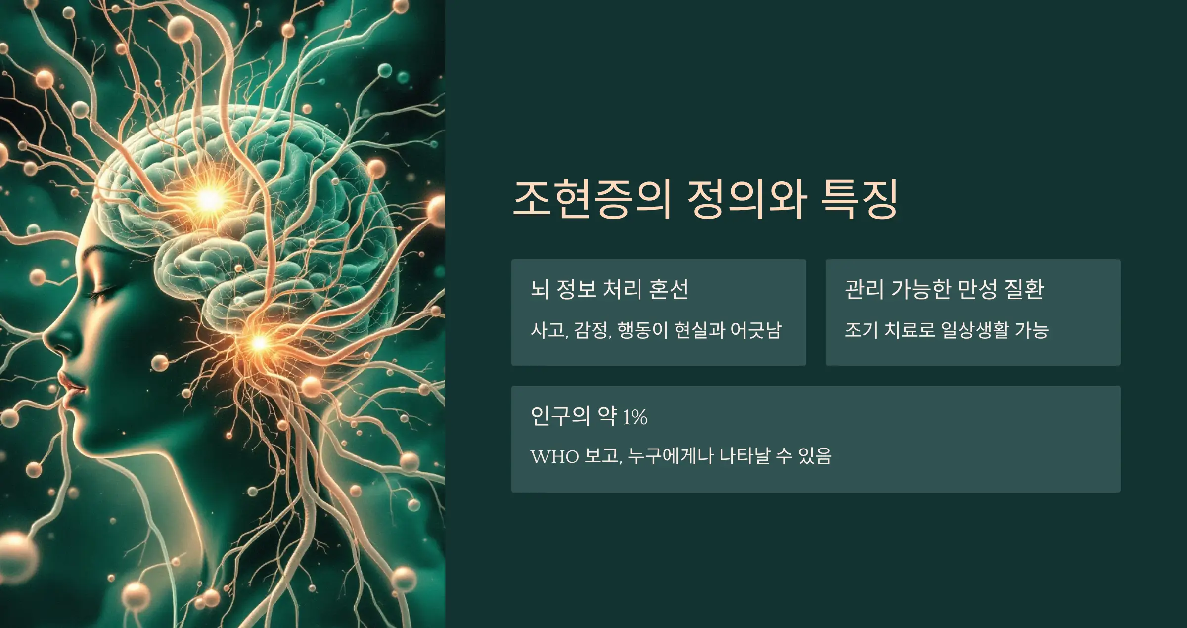 조현증은 생각보다 가까이에 있지만 우리가 잘 모르고 지나치기 쉬운 정신 건강 문제예요. 많은 분들이 "혹시 나도?"라는 의문을 품으면서도 정확한 정보를 얻기 어려워 불안감을 크게 느끼곤 합니다. 이번 글에서는 조현증의 초기 증상과 치료 방법을 정리해드릴게요. 증상을 조기에 알아차리고 치료를 시작하는 것이 무엇보다 중요하니, 끝까지 읽어보시면 도움 되실 거예요.