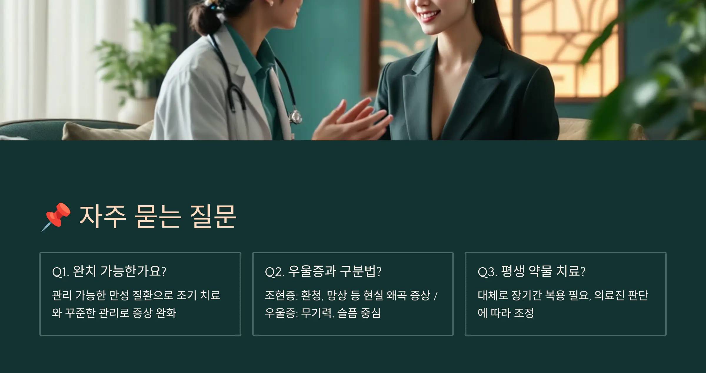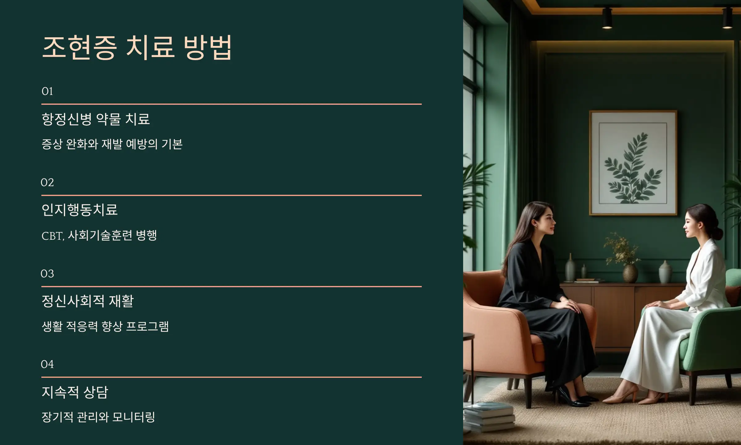 짧게 정리하자면, 조현증은 조기 발견과 꾸준한 치료가 가장 중요합니다. 더 이상 숨겨야 할 질환이 아니라, 관리 가능한 질환으로 이해하는 사회적 인식 변화가 필요하다고 생각해요.