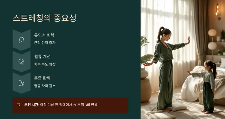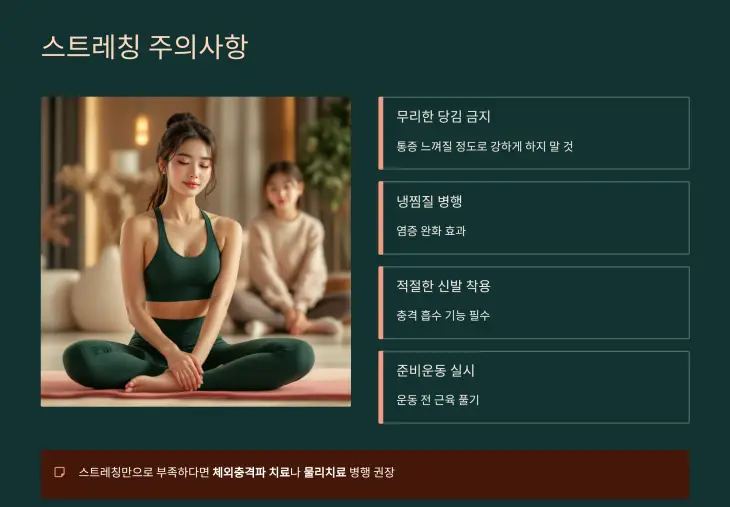 스트레칭은 도움이 되지만 잘못된 자세나 과한 자극은 오히려 염증을 악화시킬 수 있습니다.