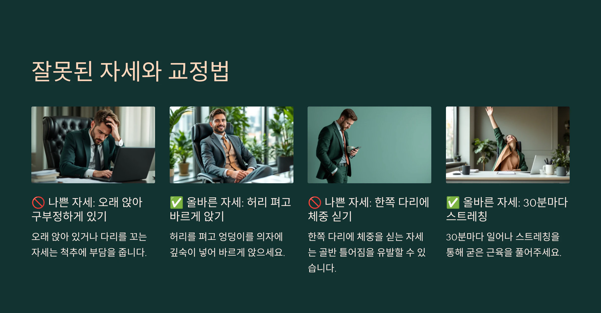 ✅ 올바른 자세 유지 – 앉을 때 허리를 꼿꼿이!
