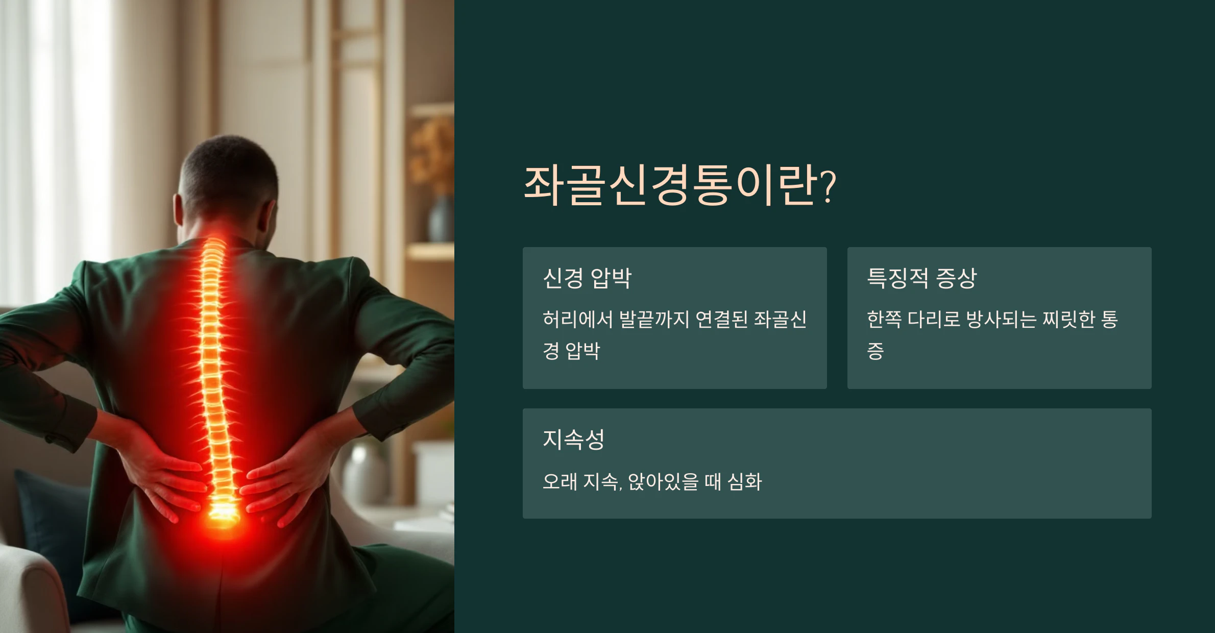 오늘은 좌골신경통의 원인, 진단, 치료법, 그리고 완화하는 생활 습관까지 알려드릴게요!
