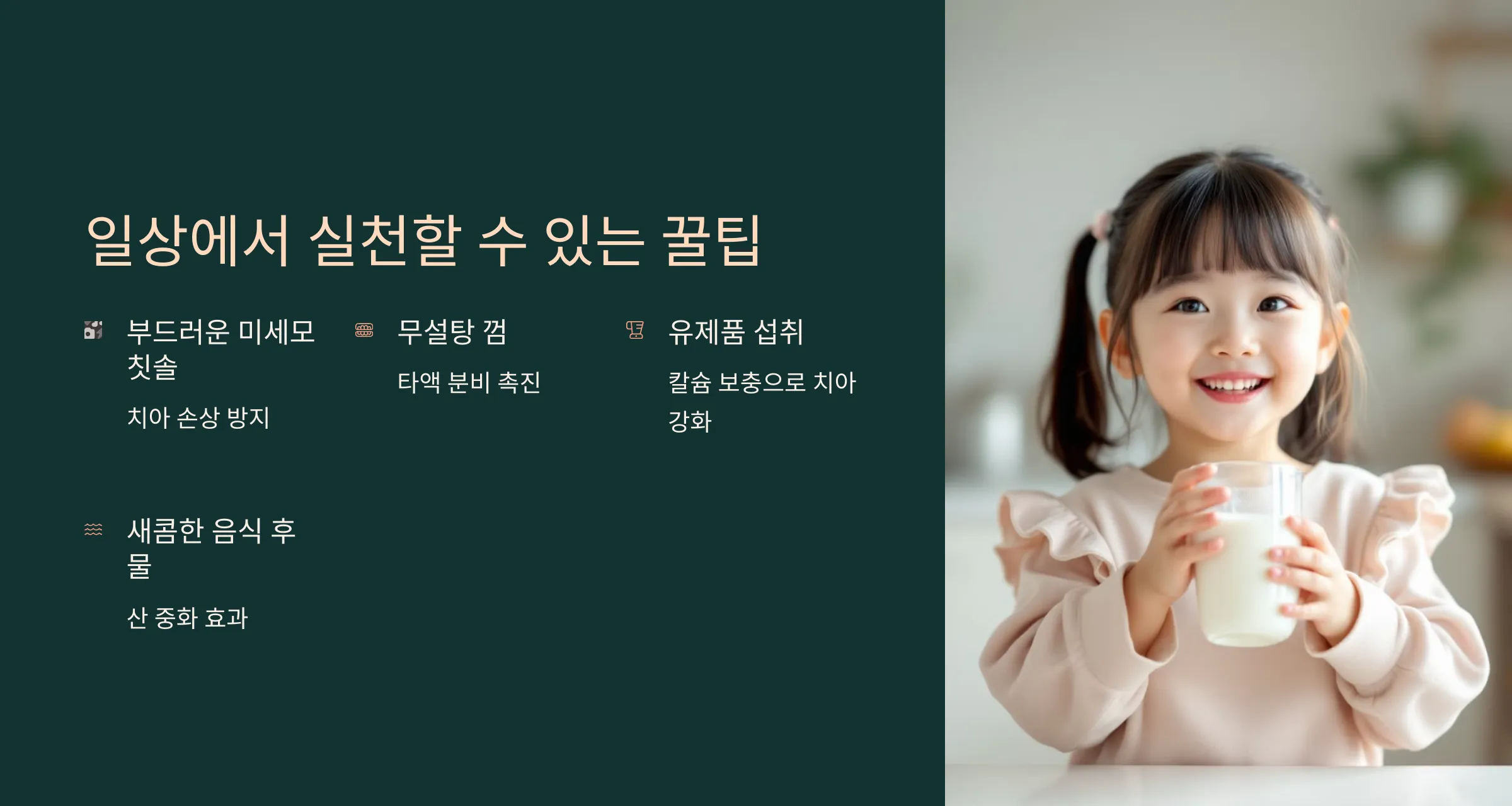 ✅ 미네랄 재도포: 불소나 하이드록시아파타이트 성분으로 치아 재광화 유도