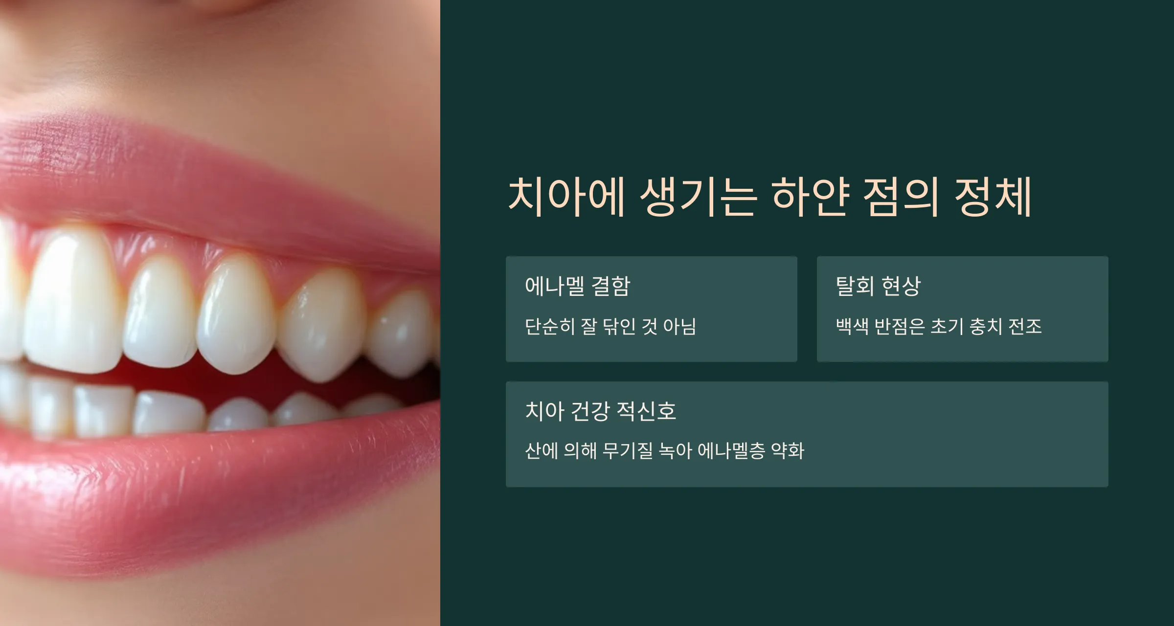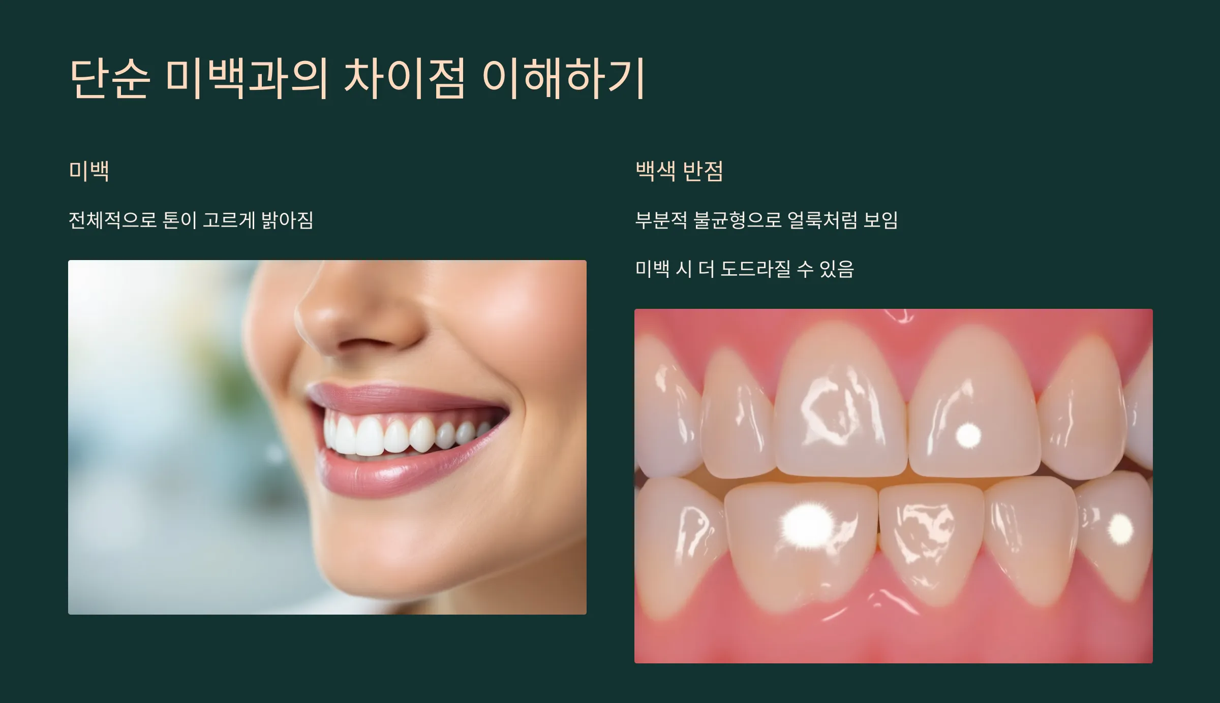 저도 처음엔 단순히 치아가 잘 닦인 줄 알았는데, 알고 보니 이게 ‘백색 반점’이라는 치과적인 현상이더라고요!