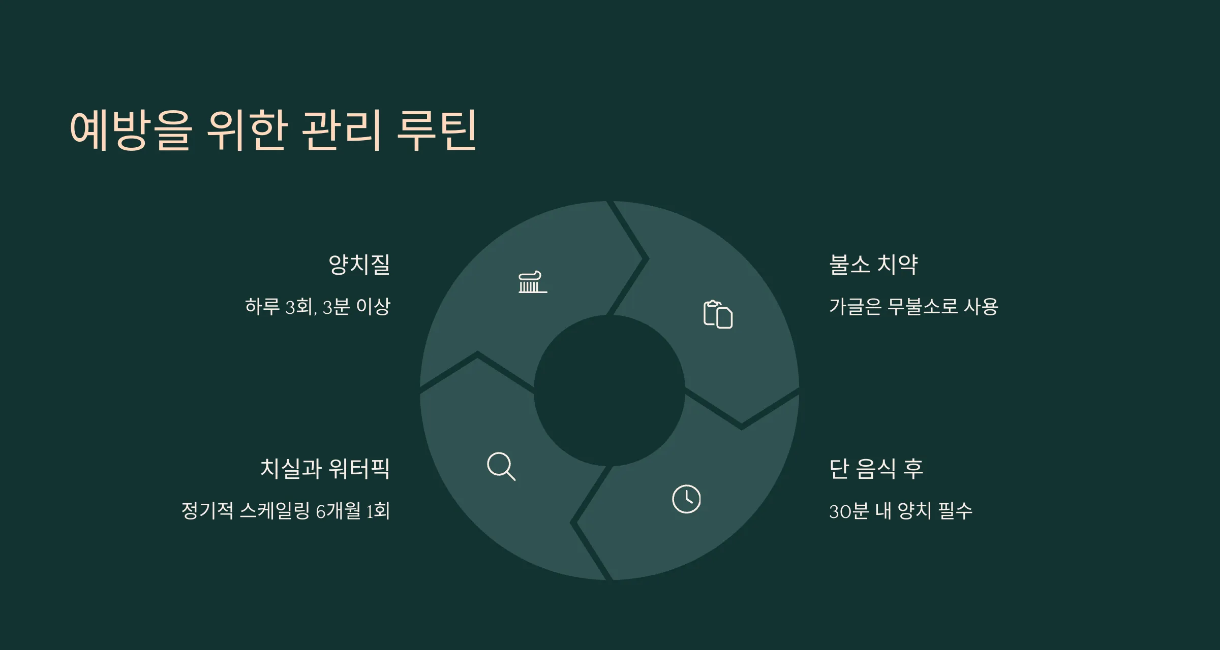 무엇보다 치아에 붙은 플라그를 남기지 않는 것이 핵심입니다!