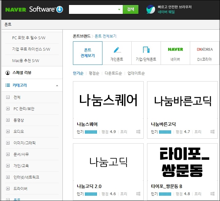 구글에서 네이버 무료 폰트를 검색해서 사이트로 이동 후 원하시는 폰트를 다운로드 하시거나