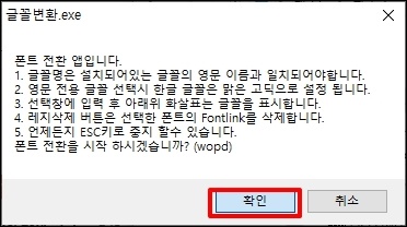 변경할 폰트를 선택하셨으면 "폰트설정" 버튼"을 클릭합니다.