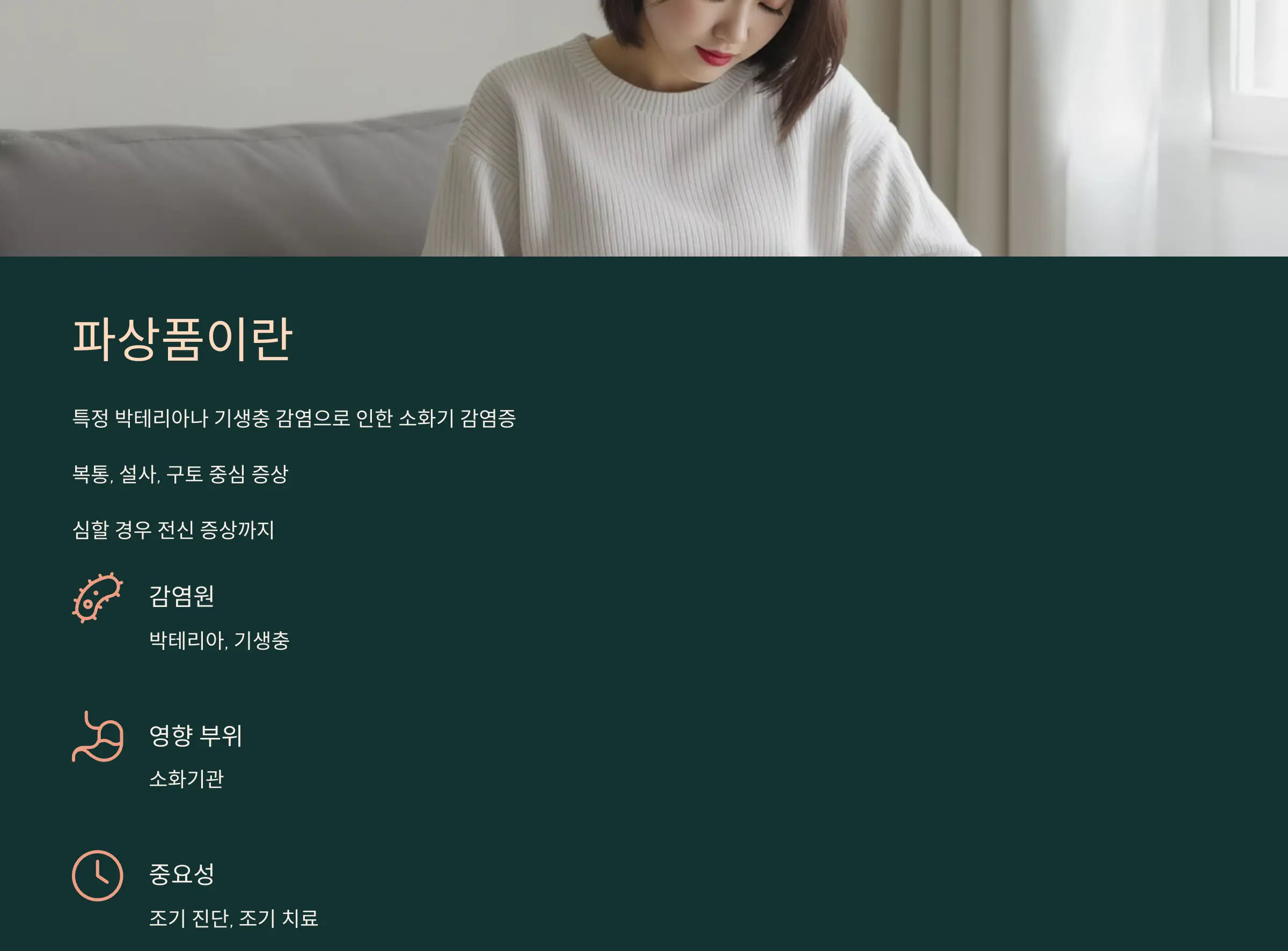 파상품은 특정 박테리아나 기생충에 감염된 후 나타나는 소화기 내 감염증이에요.