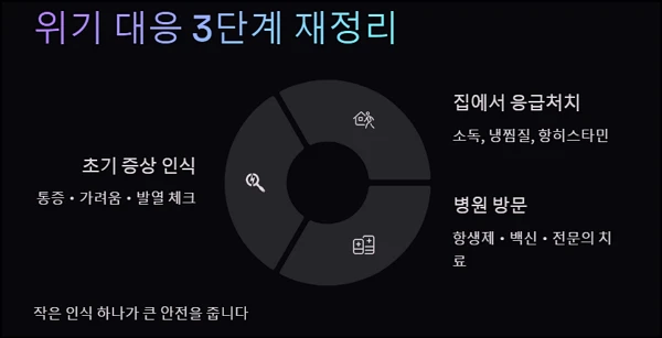 - 🔍 초기 증상 인식: 통증·가려움·발열 유무 체크