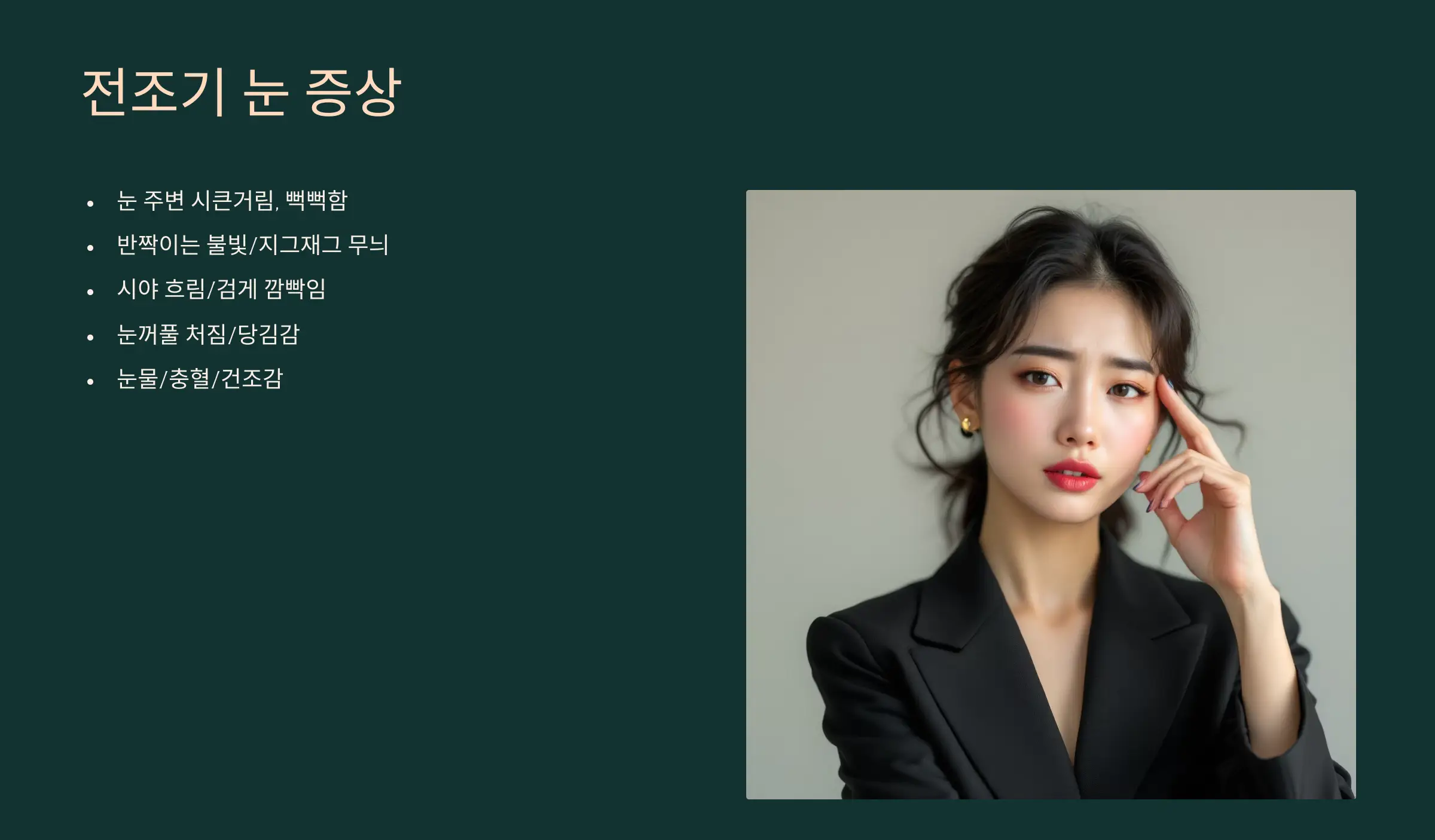 - 삼차신경 활성화: 눈 주위의 감각 신경이 과민해지면서 눈찌릿함, 따끔거림이 나타나요.