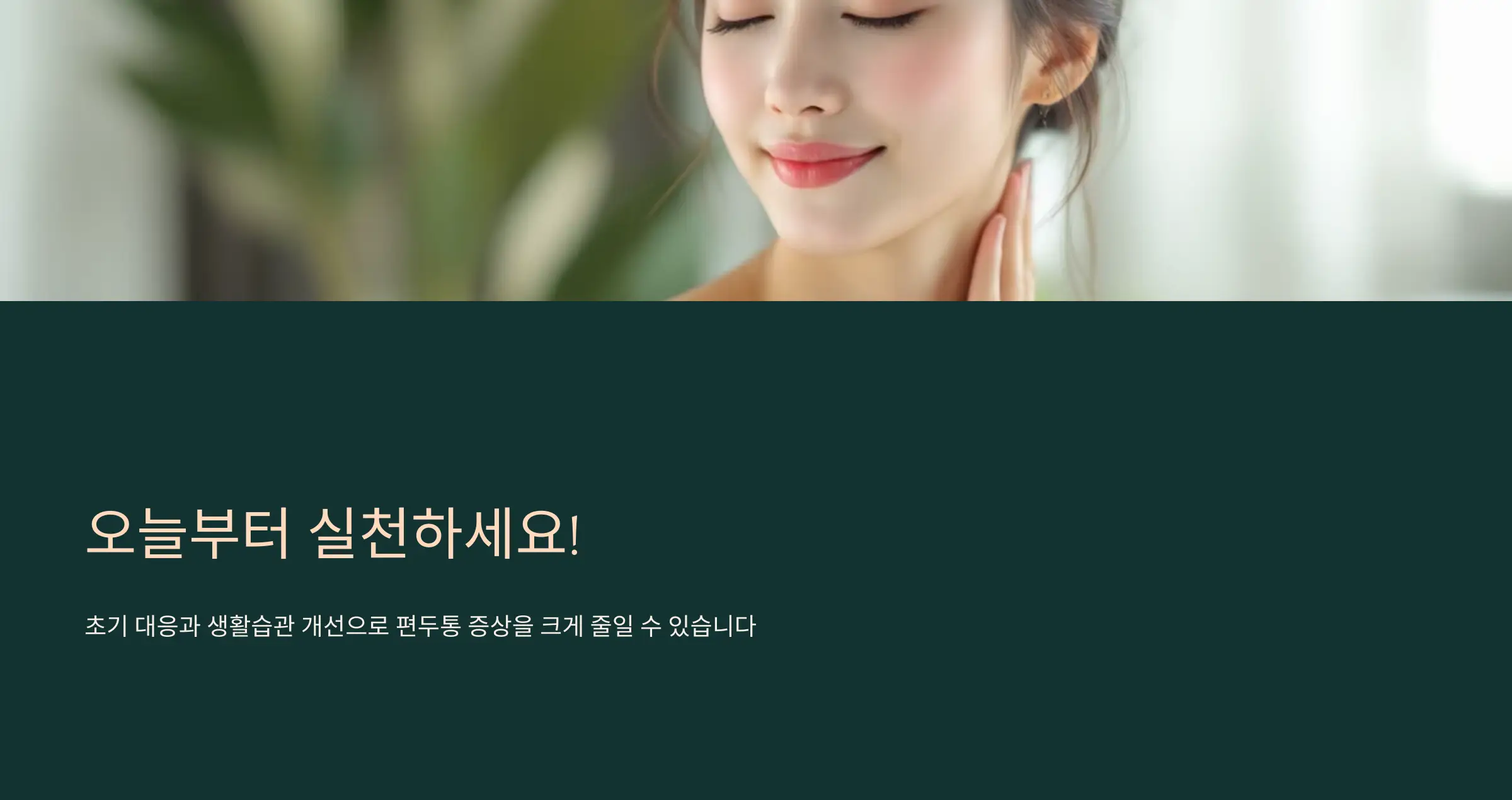 - 심호흡 5분, 명상, 눈 감은 스트레칭을 습관화하면 자율신경이 조절되어 두통이 줄어듭니다.