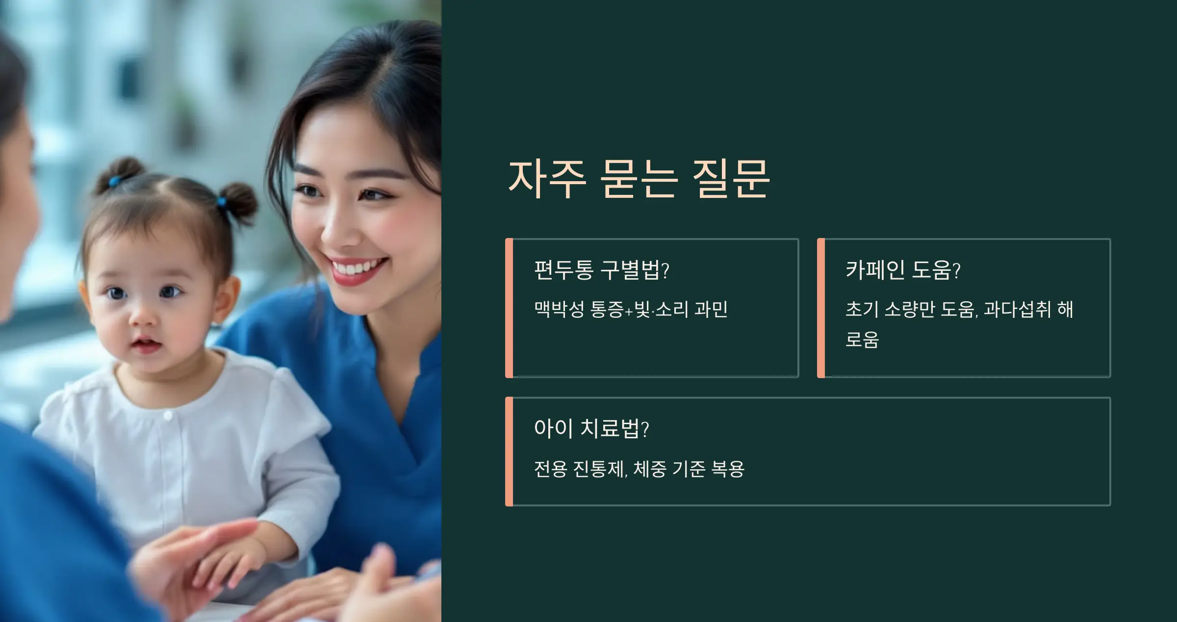 – 아동 전용 진통제와 체중 기준 복용이 필요합니다. 반드시 전문의 상담하세요.