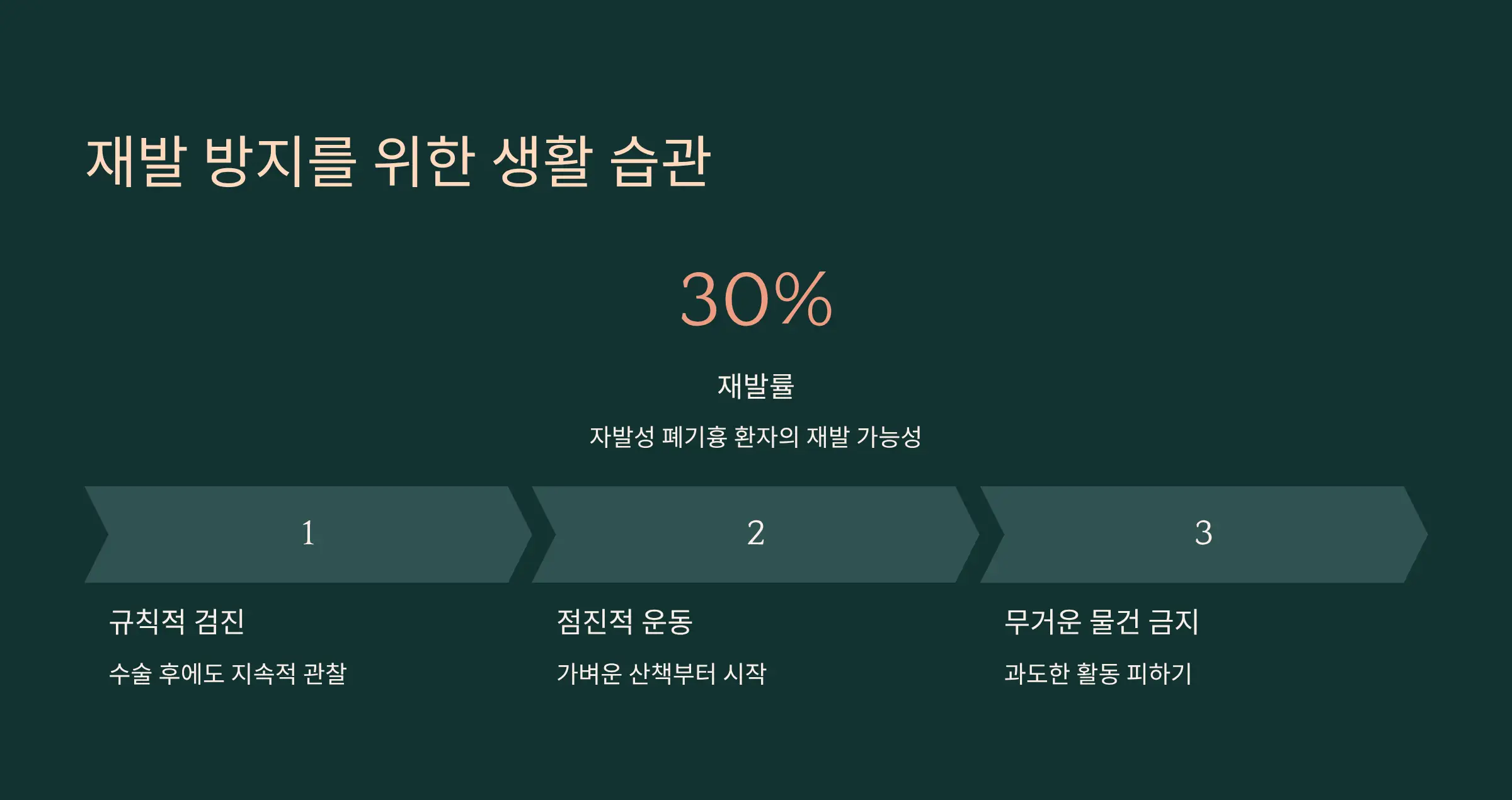 폐기흉은 재발률이 높은 질환 중 하나입니다. 특히 자발성 폐기흉 환자의 경우 30% 이상이 다시 발생할 수 있어요. 따라서 수술 후에도 규칙적인 검진을 받고, 과도한 운동이나 무거운 물건 들기를 피해야 합니다. 📉 저는 수술 후 의료진의 조언대로 ‘가벼운 산책부터 시작해 점차 활동량을 늘리는 방법’을 실천했는데, 확실히 회복에 도움이 되더라고요.