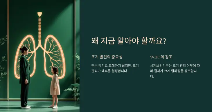 국내·외 호흡기 학회 자료에서도 ‘3주 이상 지속되는 기침·가래’는 조기 검사의 기준으로 권하고 있을 만큼 매우 중요한 신호예요. 작다고 넘기지 않는 것이 큰 예방입니다.