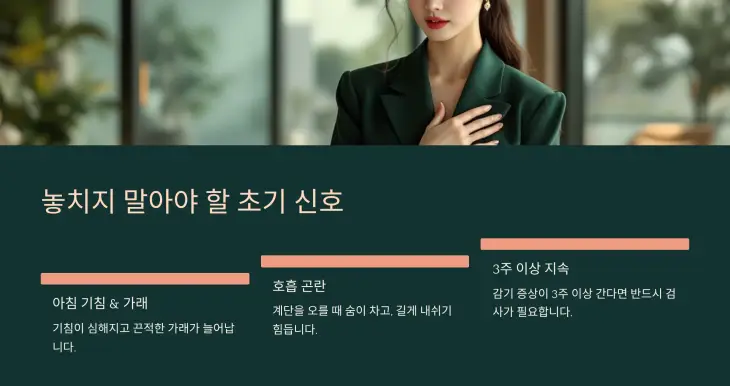 기침·가래가 3주 이상 지속되거나 숨이 쉽게 차면 검진을 권합니다.