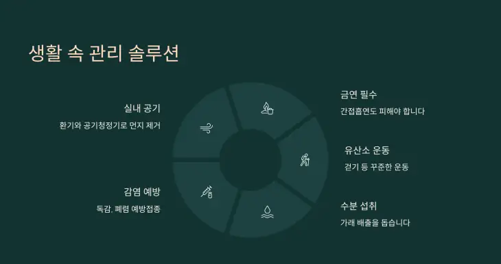 폐쇄성 폐질환은 생활 관리만 잘해도 악화 속도를 크게 늦출 수 있어요. 꼭 챙기면 좋은 관리 요소들을 정리해드릴게요.