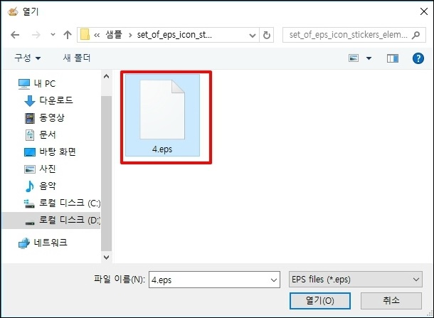 탐색기 창이 열리면 뷰어를 통해서 볼 eps 파일을 선택합니다.