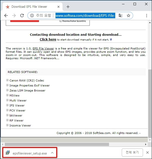 eps 파일 뷰어 다운로드 사이트에 접속하면 브라우저 하단에 설치 파일이 자동으로 다운로드됩니다.