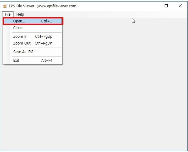 EPS 파일 뷰어를 실행하고 상단 메뉴에서 "FILE" - "OPEN"을 선택합니다.