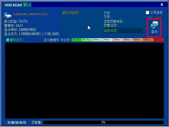 GM HDD SCAN V2.0은 불량 섹터를 확인하는 프로그램 입니다.