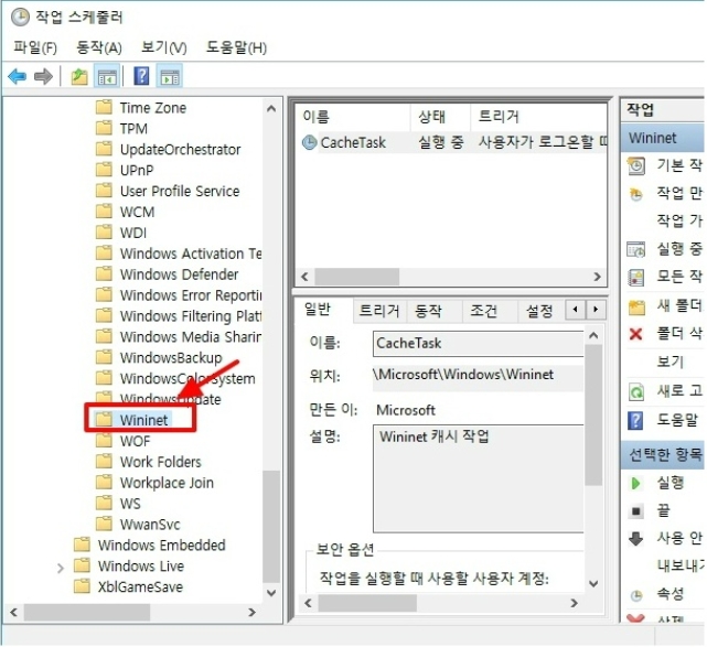 작업 스케줄러 창이 나타나면 작업 이름 항목에서 "CacheTask"를 선택하세요.