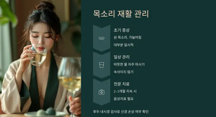 🏥 음성 변화가 지속될 경우, 이비인후과 또는 재활의학과에서 후두 내시경 검사를 통해 신경 손상 여부를 확인해야 합니다.