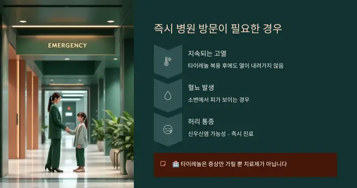 타이레놀을 먹어도 열이 계속 나거나, 소변에서 피가 보이거나, 허리 통증이 함께 나타난다면 즉시 비뇨의학과를 방문해야 합니다.