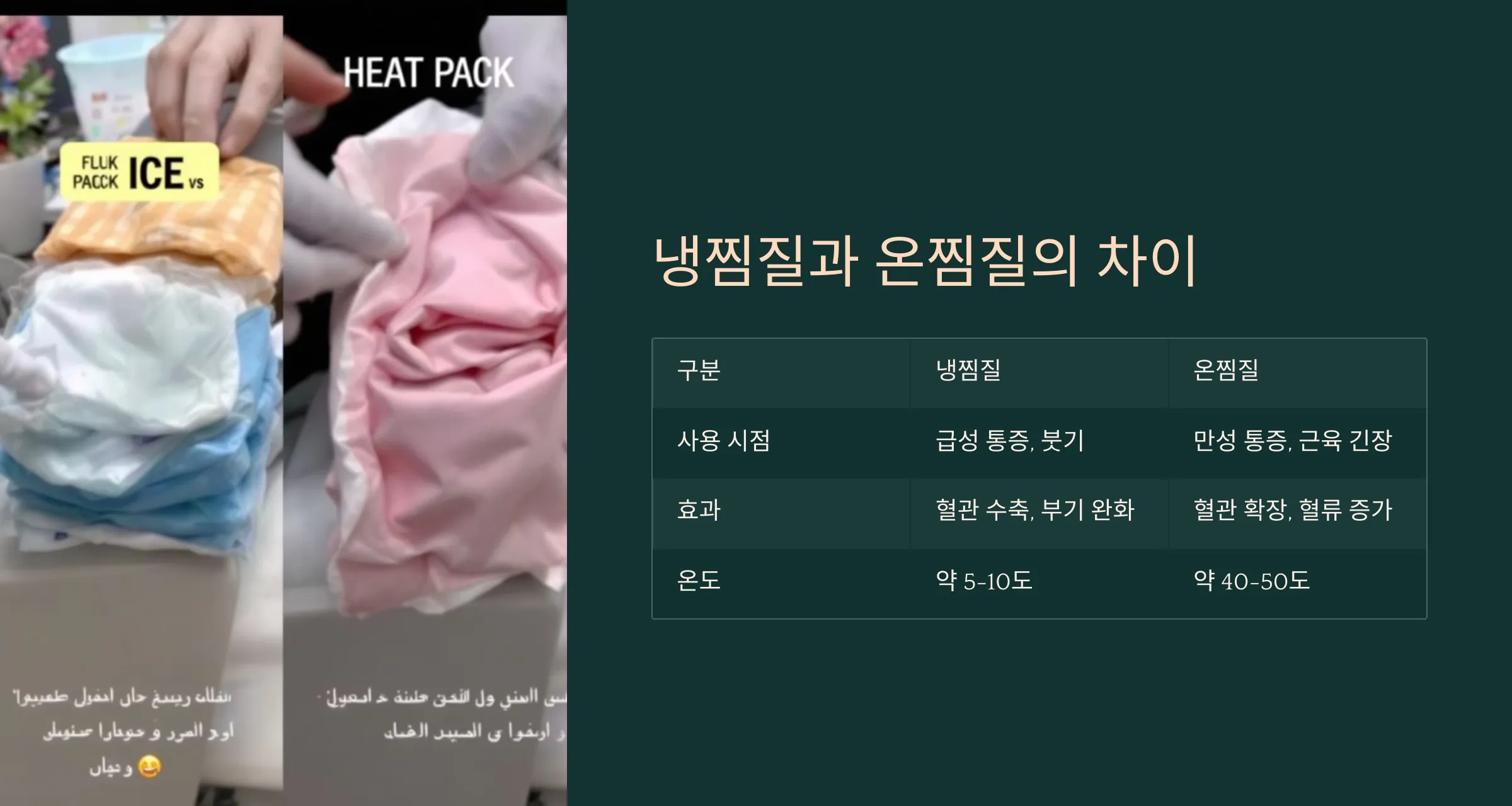 찜질은 단순히 ‘뜨겁게, 차갑게’가 아니라, 목적과 효과가 다릅니다.