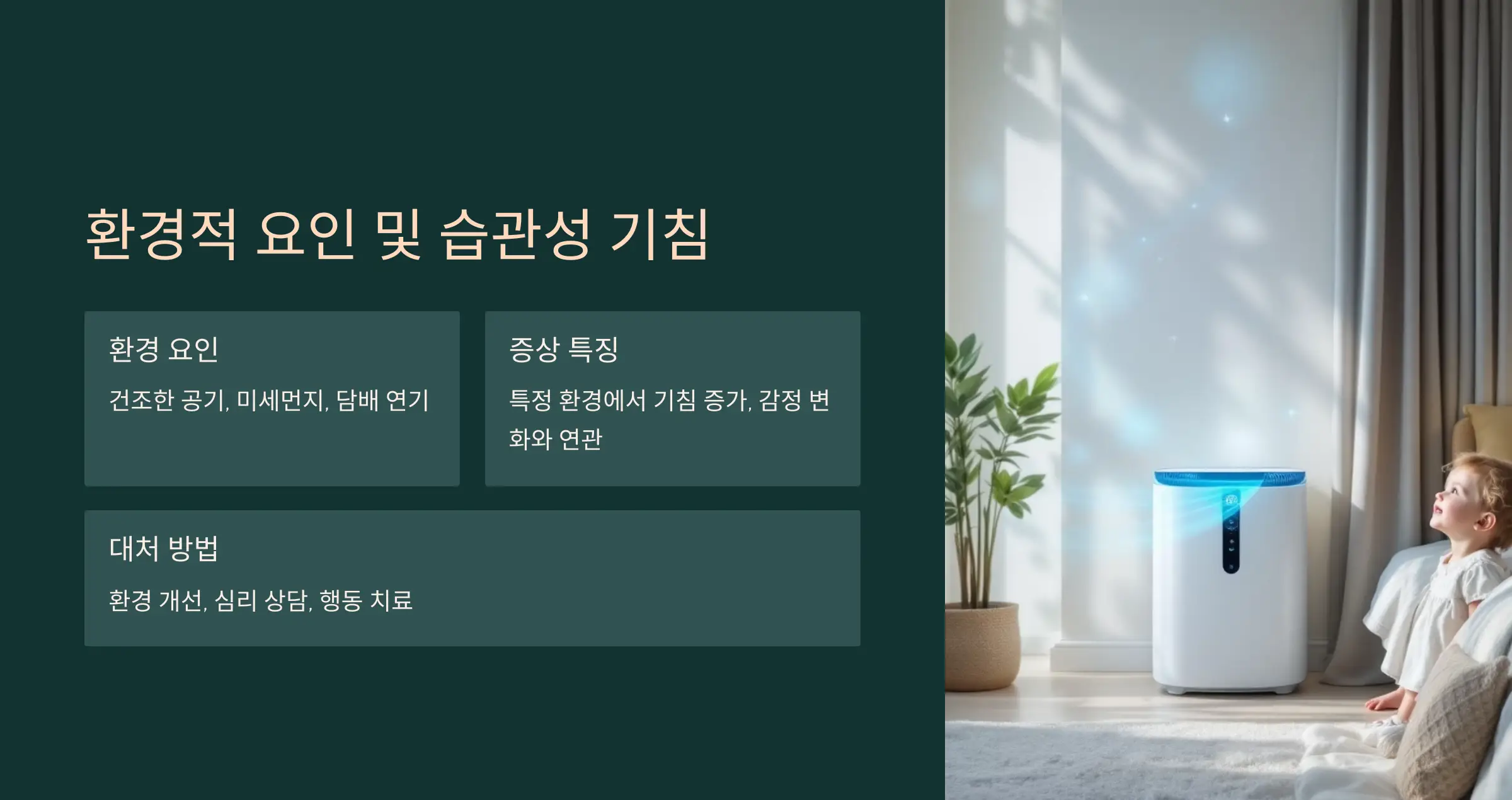 건조한 공기, 미세먼지, 담배 연기 등 환경적 요인도 기침을 유발할 수 있어요.